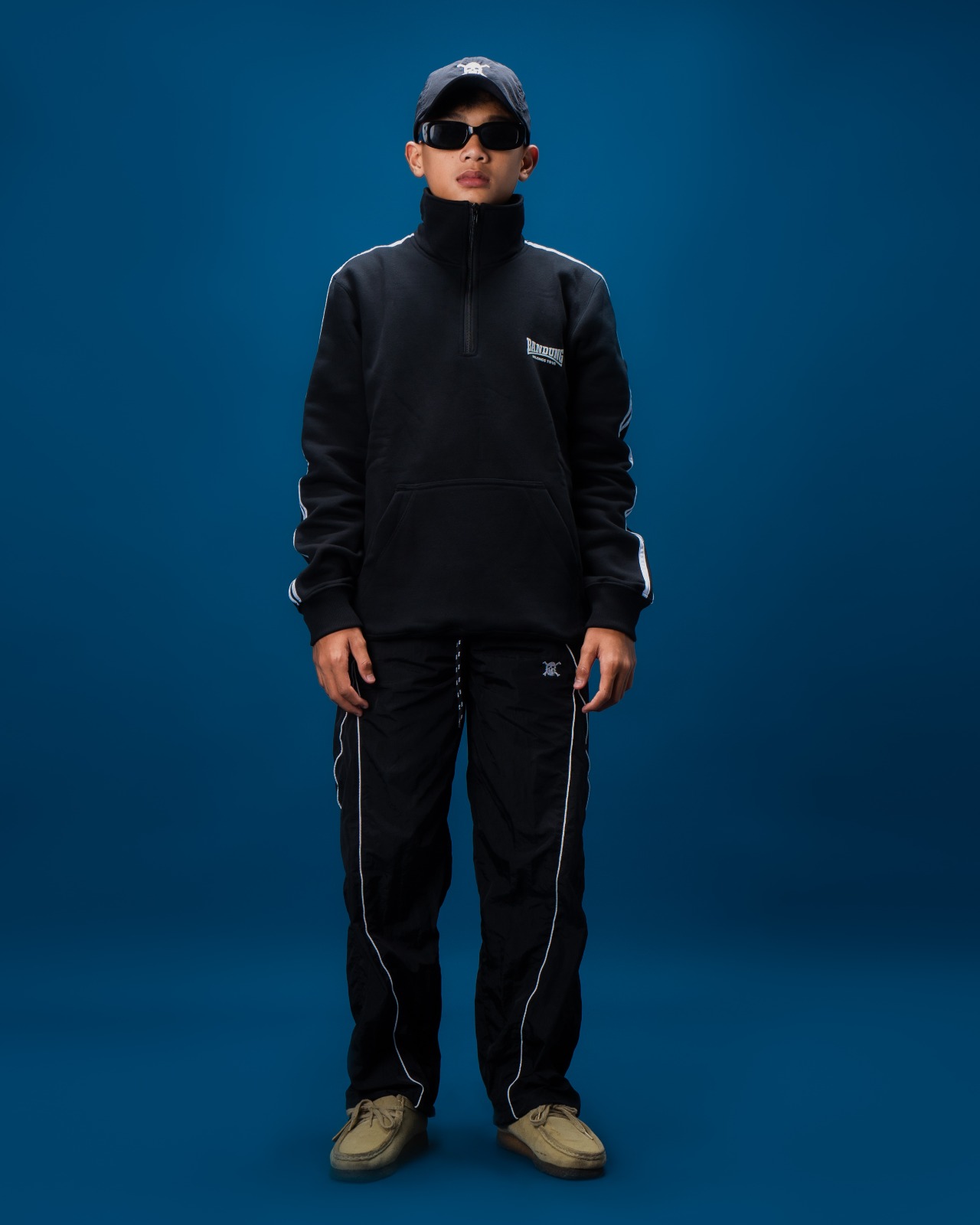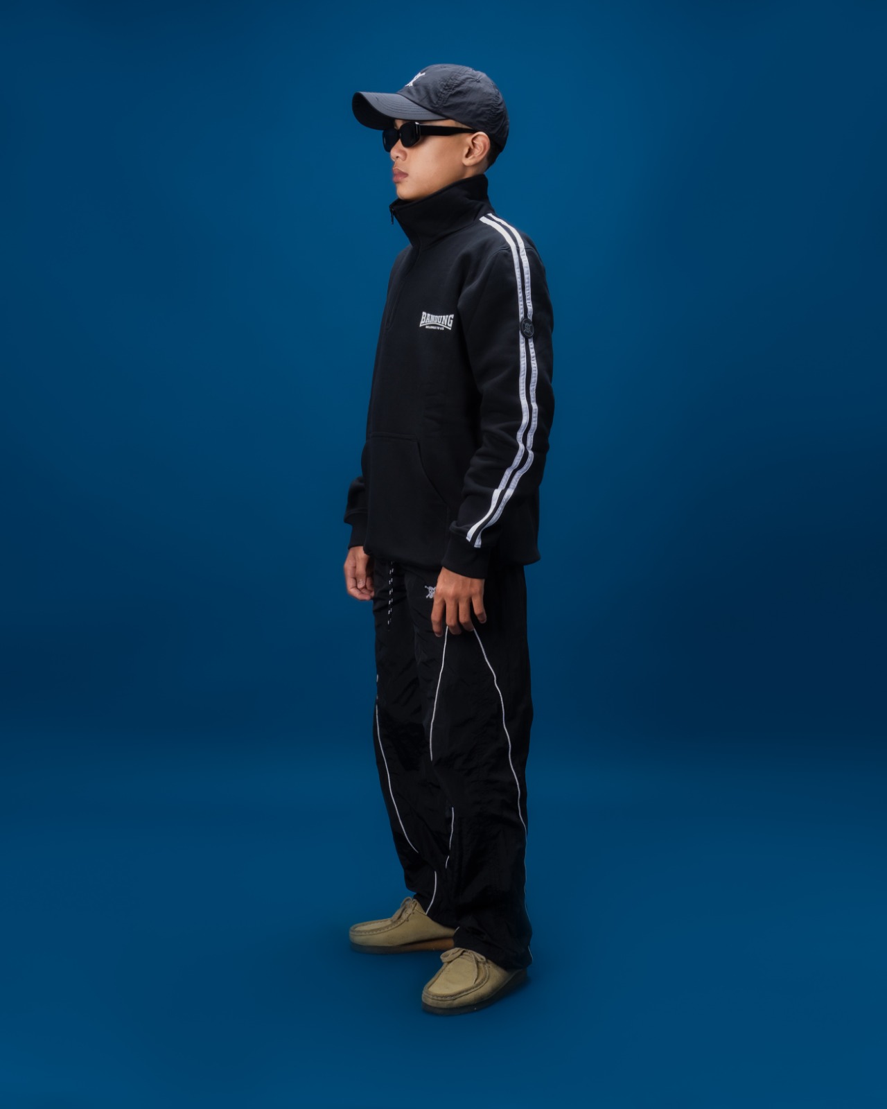 Dilengkapi dengan resleting setengah badan (half-zipper) di bagian depan dan bordir logo Bandung Belongs To Us di sisi dada kiri, sweater ini tampil clean dan tegas. Terdapat detail list putih di kedua sisi lengan yang memperkuat kesan retro sportwear yang menjadi ciri khas koleksi BBTU.